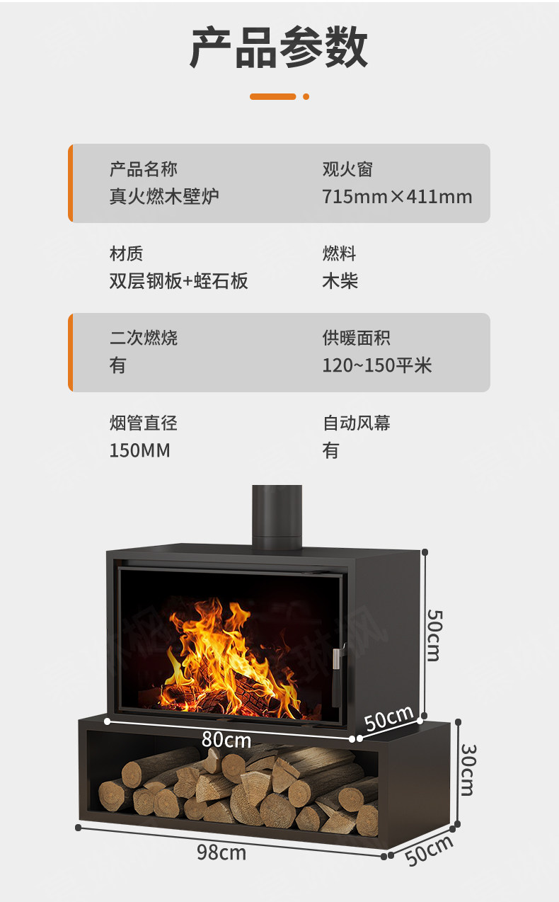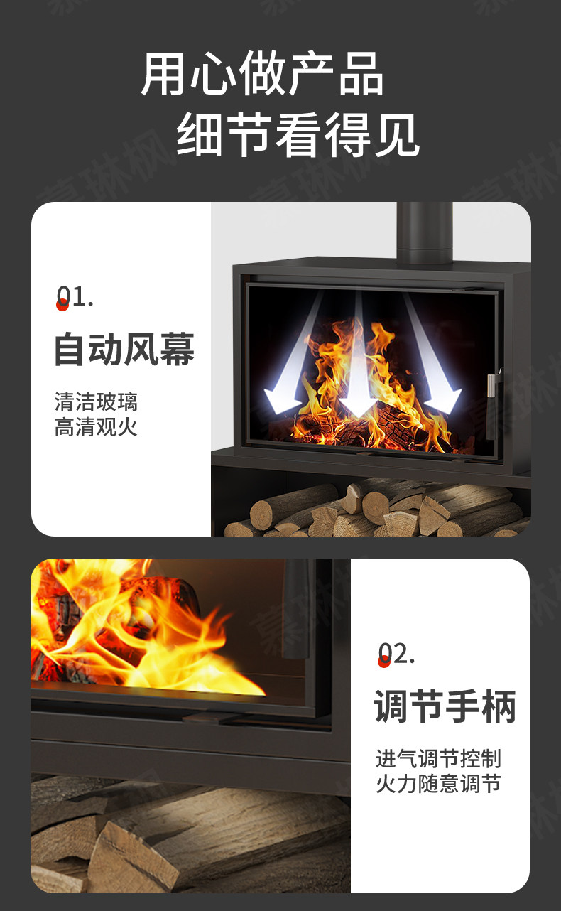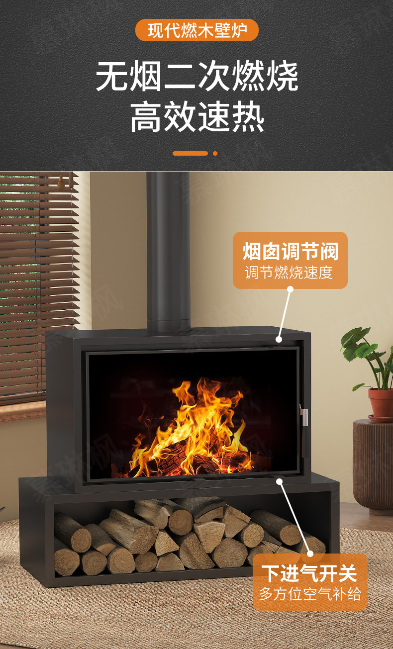 Large-screen Real-fire Fireplace, Wood-burning Stove for Heating, Firewood Stove Cast Iron Fireplac fireplace био камин